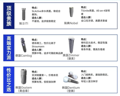 適合人群:預(yù)算充足(單顆種植5000-10000元)、需要復(fù)雜種植、追求高成功率的患者。